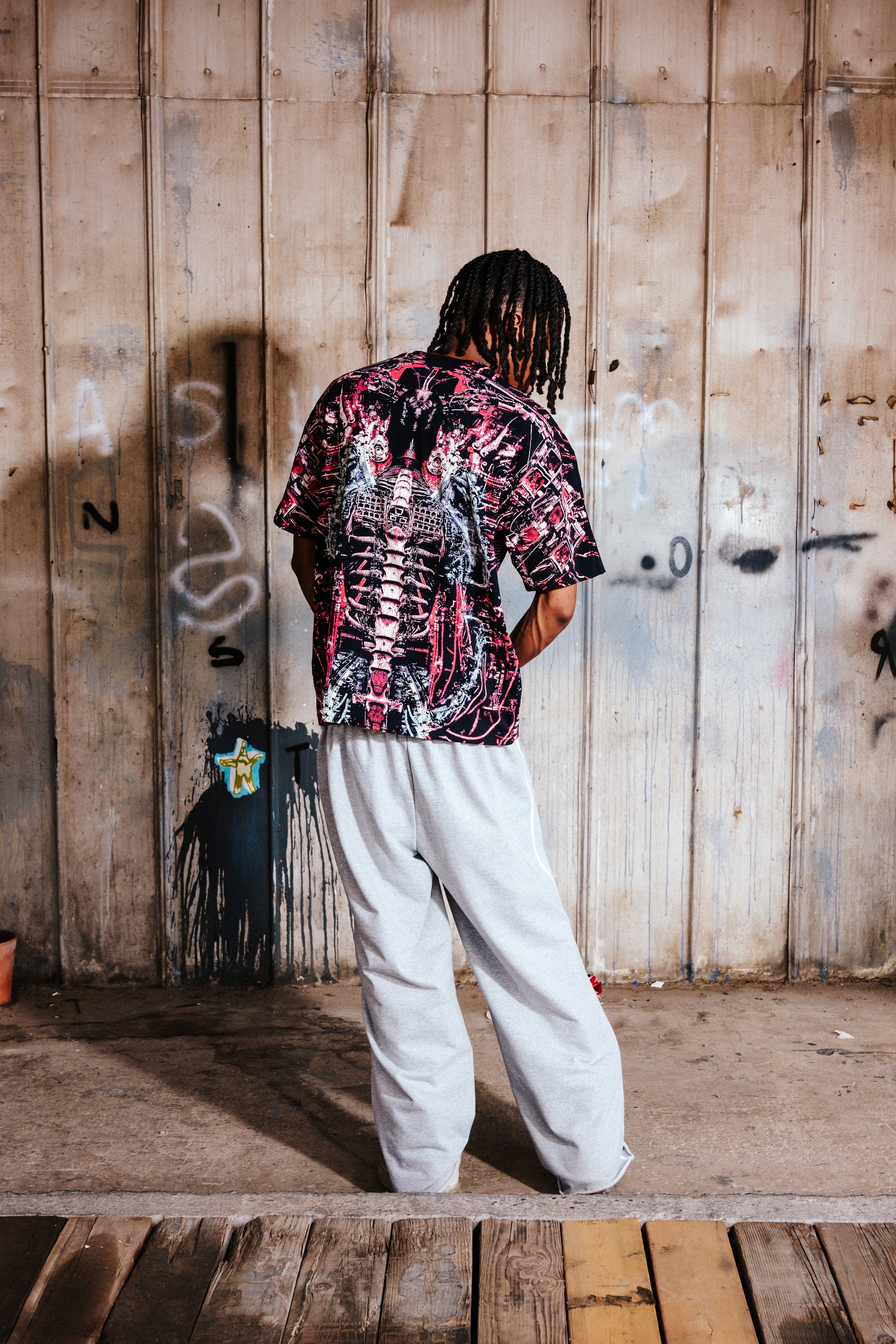 blending dark aesthetic with cyber streetwear.
